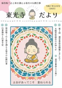 『東光寺だより 令和7(2025)年11月号』を発行しましたので、お知らせいたします。 下記ボタンより、pdfをダウンロードすることも可能です。
