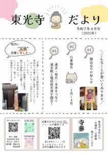 『東光寺だより 令和7(2025)年11月号』を発行しましたので、お知らせいたします。 下記ボタンより、pdfをダウンロードすることも可能です。